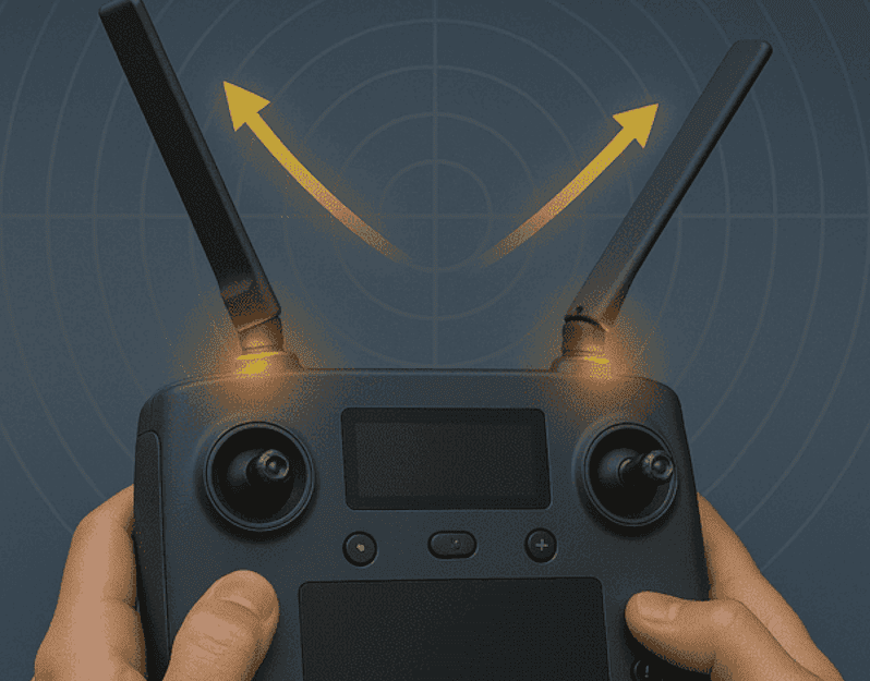 Контроллер Mavic оснащён направленными антеннами. Для уверенной работы: