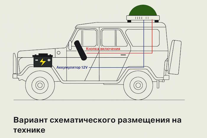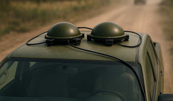 Задача комплекса — создать вокруг машины «сложную среду» для дрона, чтобы атаковать технику под куполом помех было заметно труднее и менее надёжно по результату.