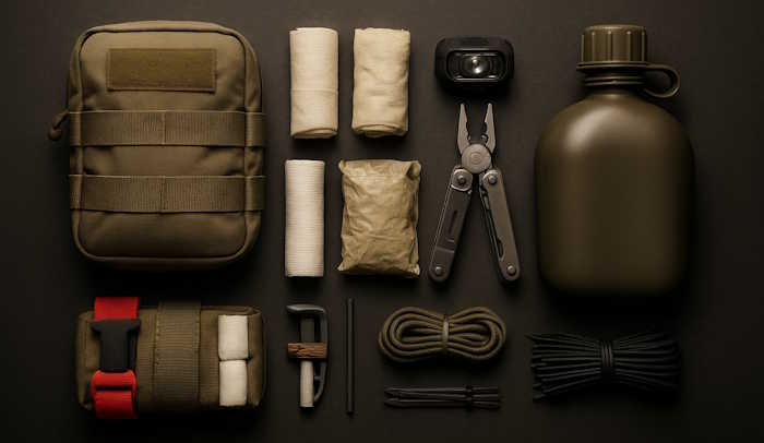 Индивидуальная аптечка — обязательный элемент базового комплекта бойца, а не формальность. Пример базового набора: